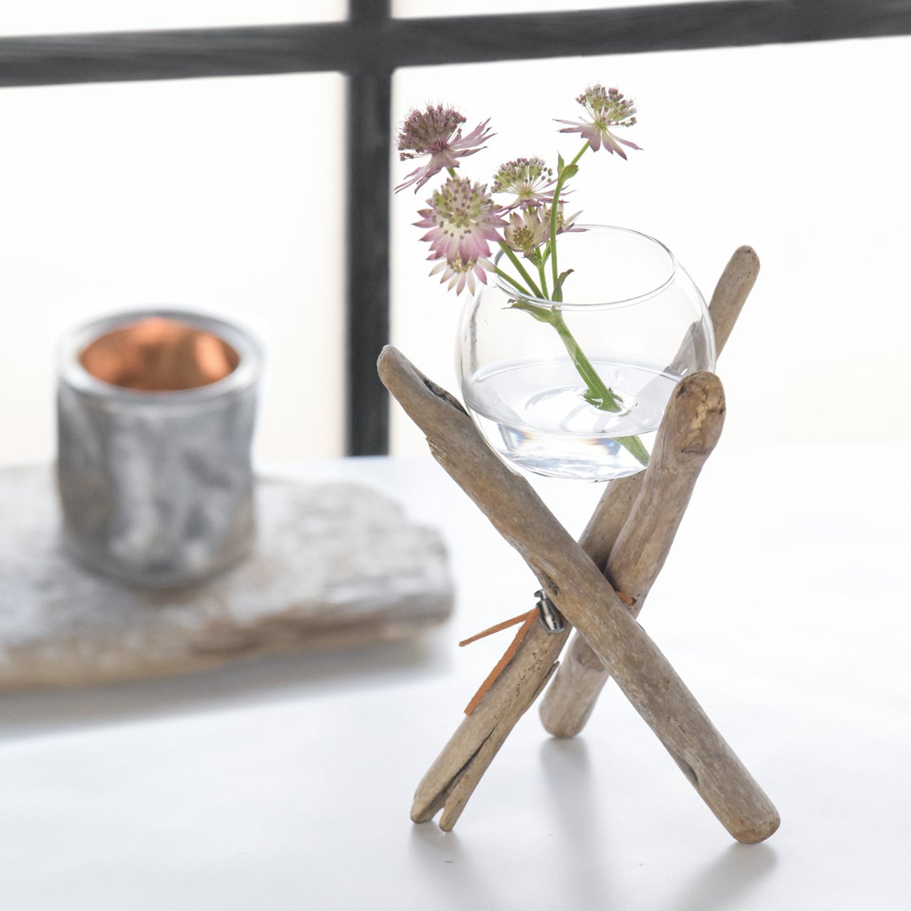 それぞれ単独でも使えるのでエアプランツやドライフラワーのスタンドとして、ガラスボールはキャンドルホルダーなどとしても利用出来ます。